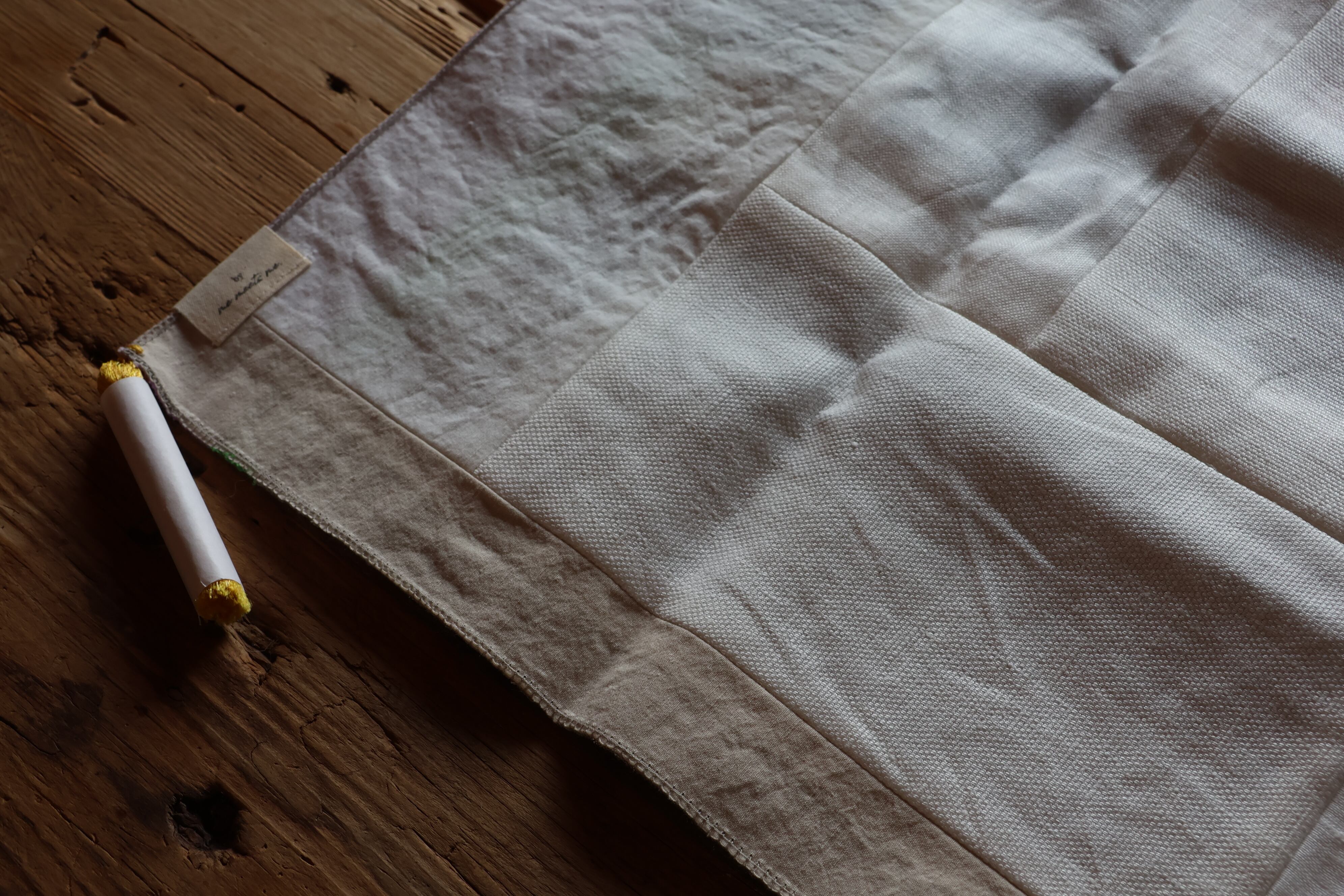 天然繊維、また工場での規格外の布を使用しておりますので、織り傷、染めムラのように見えるものなどが残っている場合がございます。