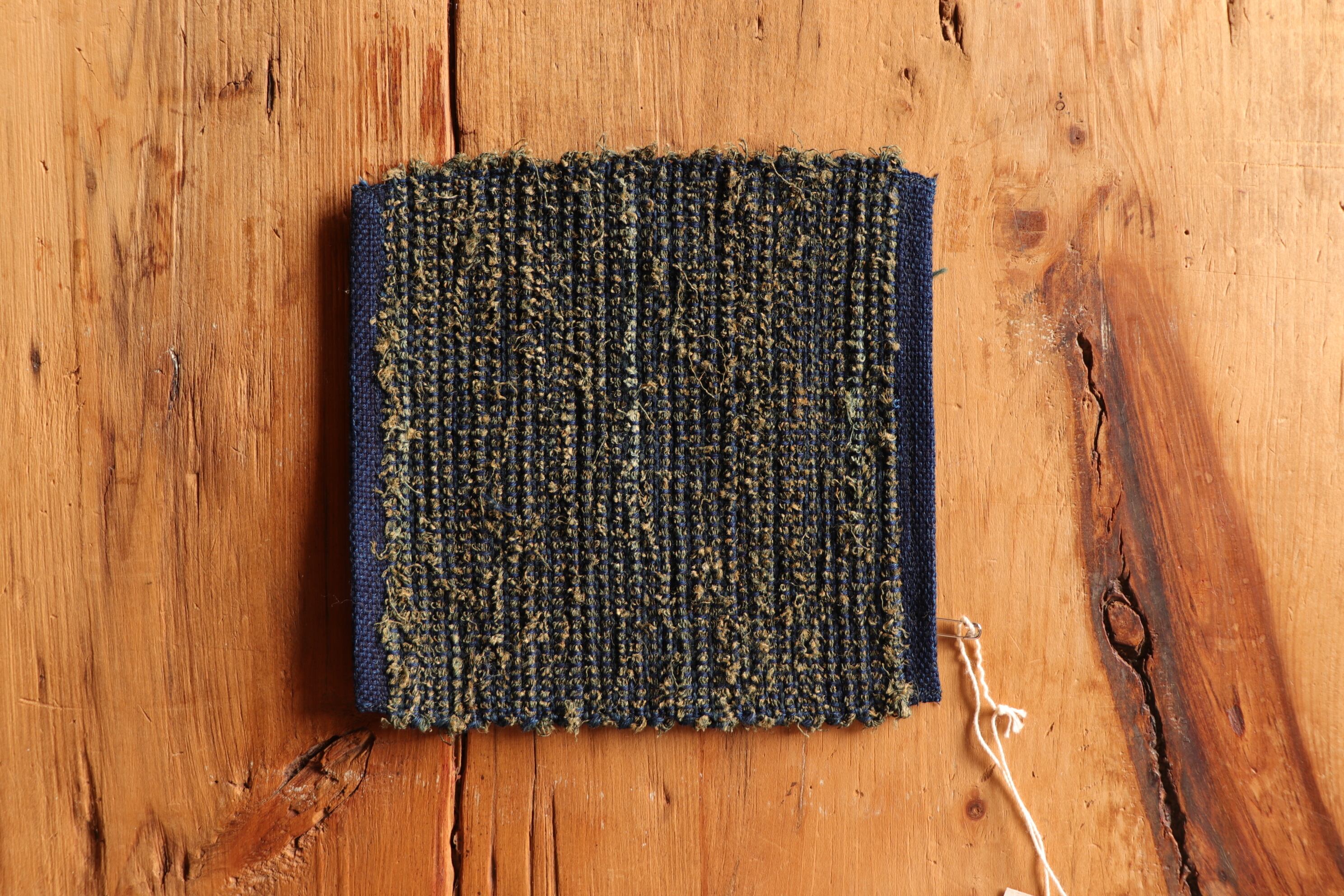 素材:タテ 本藍染木綿糸/ヨコ 蚊帳古布(麻)・藍染木綿糸・藍染リネン糸