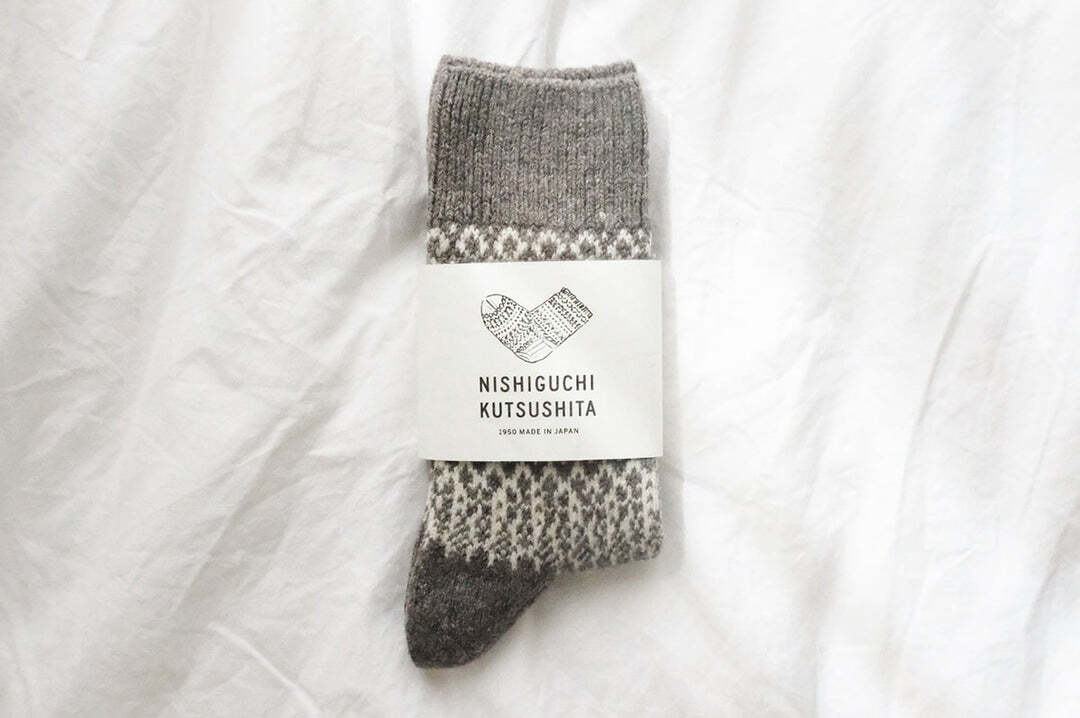 【Ssize】NISHIGUCHI KUTSUSHITA ウールジャガードソックス