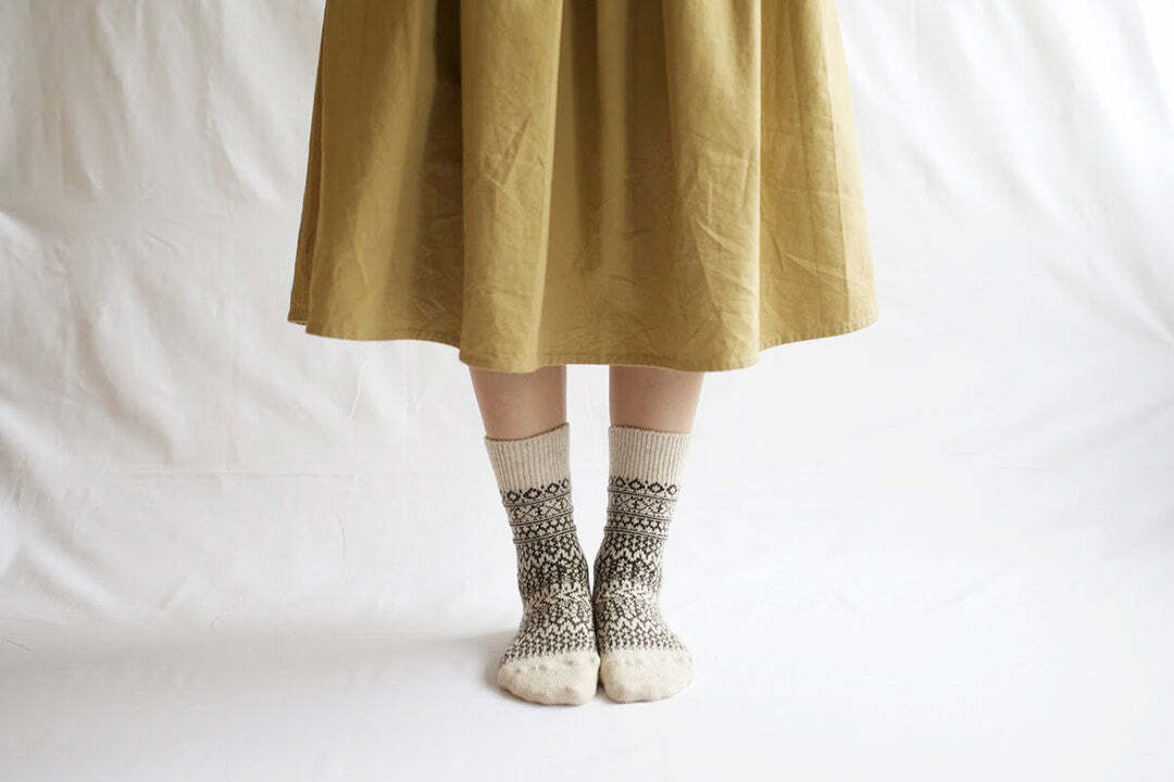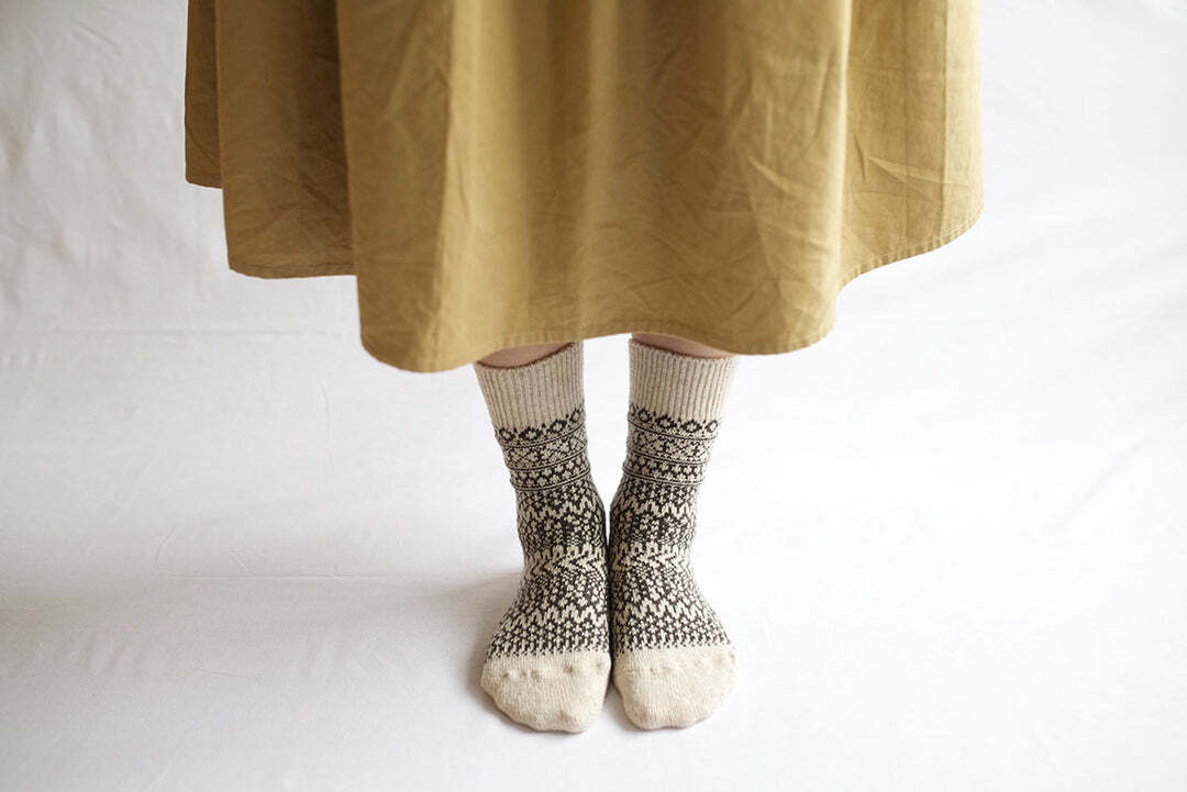 寒い時期に気分が明るくなるようジャガード編みのソックス。