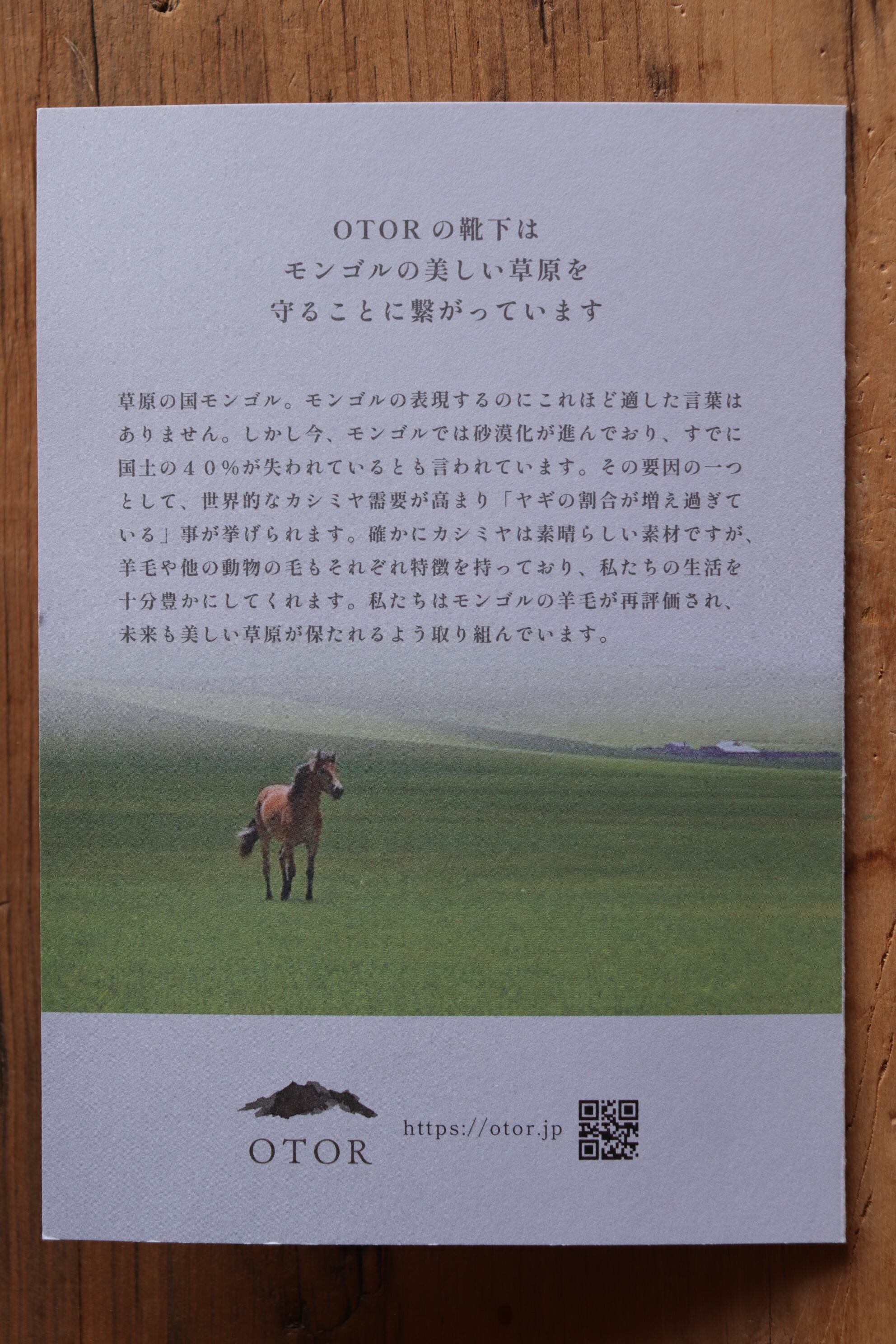 「OTOR /オトル」とは、遊牧民がより草が生えている所へ移動するという意味のモンゴル語の言葉です。