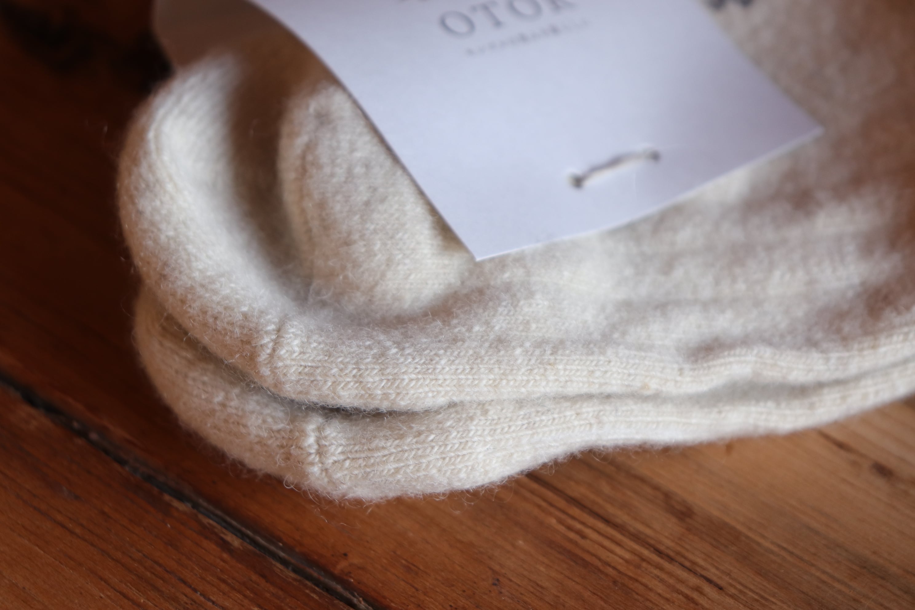 OTORの靴下はできるまでに数回洗浄の工程があり、仕上がった靴下も蒸気でプレスされているため縮みにくく、水洗いであれば他の洗濯物と一緒に洗濯機で洗うことができます。