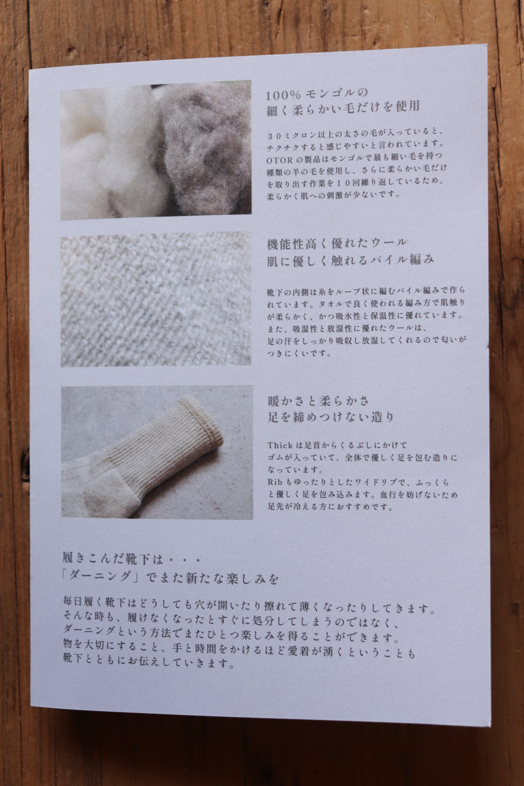 OTORの製品はモンゴルで最も細い毛を持つ種類の羊の毛を使用し、さらに柔らかい毛だけを取り出す作業を10回繰り返しているため、柔らかく肌への刺激が少ないです。